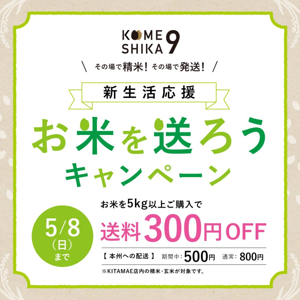 お米を5kg以上ご購入で、送料を300円引き。