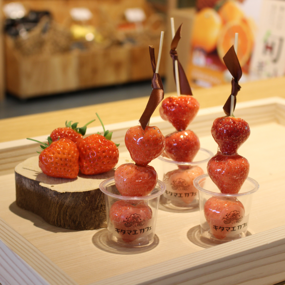 「SHOKURO」さんの越後姫を使用したいちご飴を、