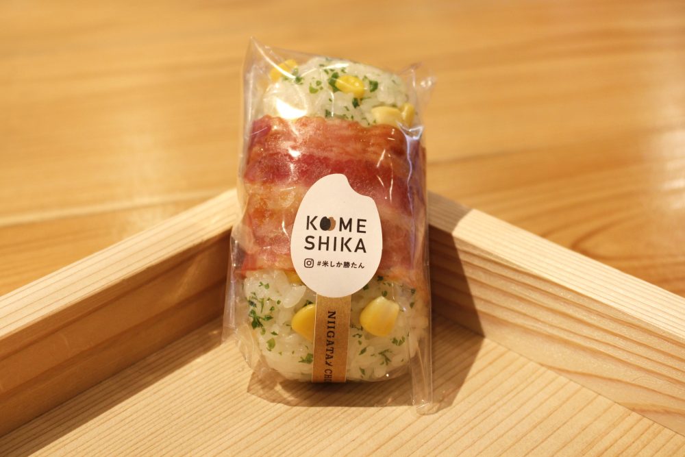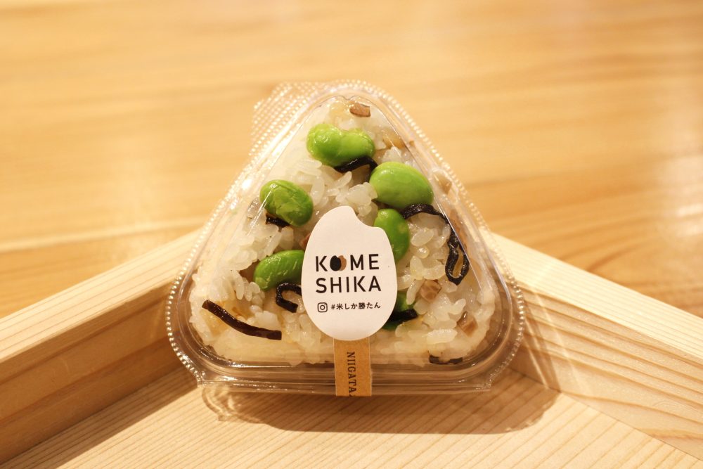 枝豆と、秋田県名産の「いぶりがっこ」を使ったおむすび。いぶりがっこ独特の燻香とパリパリとした食感がたまらない。