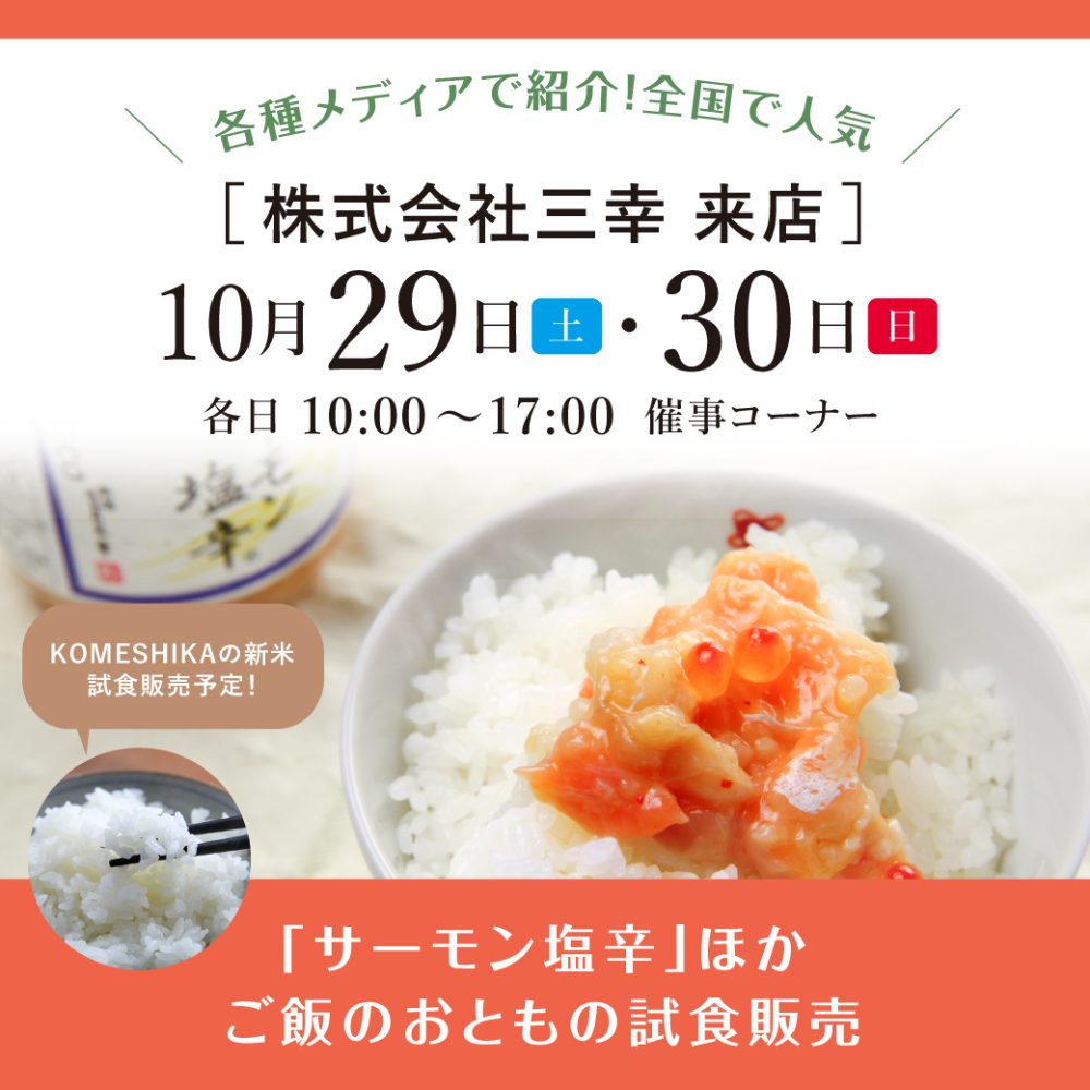 三幸さんの珍味にぴったりな、KOMESHIKAの新米の試食も行います。