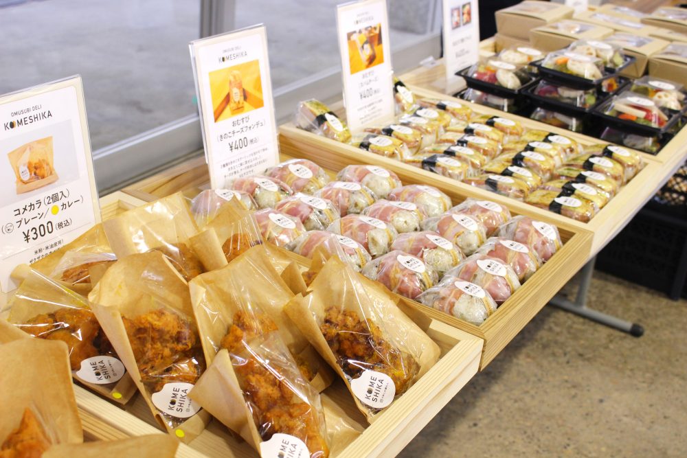 KOMESHIKAのおむすび・お惣菜のほか、KITAMAEで取り扱っている商品の中からワインに合うおつまみを販売。ご来店いただいたお客様が、さらに別のお客様にKITAMAEの商品をおすすめいただく嬉しい場面もありました。