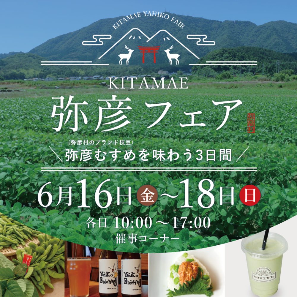 KITAMAEでは、6月16日、17日、18日の3日間、「KITAMAE弥彦フェア」を開催します。