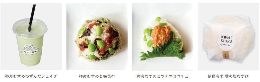 弥彦ブランドの美味しいものが集まるほか、キタマエカフェ、KOMESHIKAおむすびの限定コラボメニューも販売いたします!