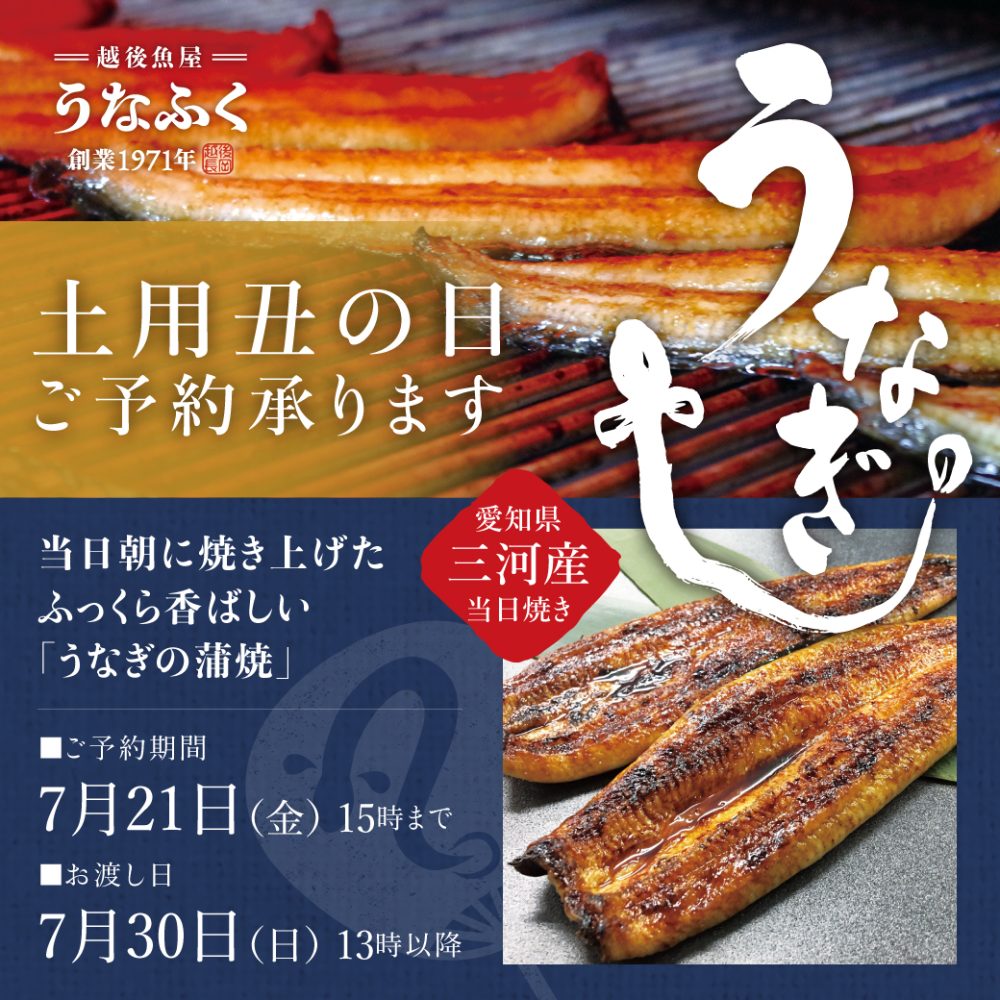 KITAMAEでは、長岡「越後魚屋うなふく」さんの「うなぎの蒲焼き」を予約受付いたします!