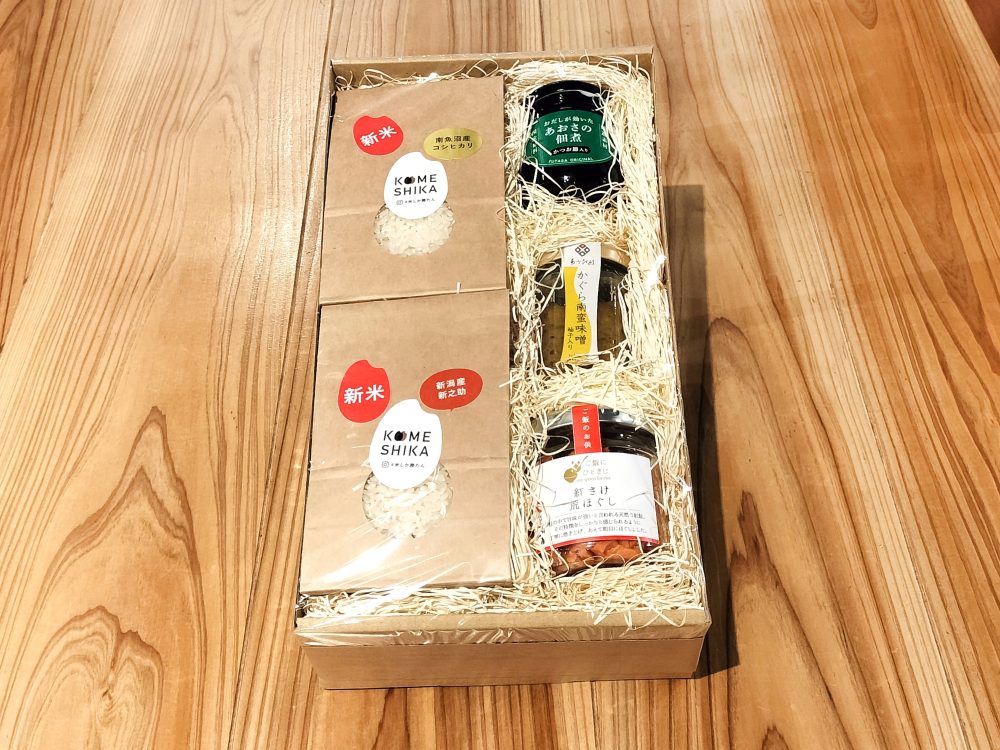 当店で大人気のかぐら南蛮味噌などのご飯のお供が入った、お歳暮やご挨拶返しにぴったりのギフト。