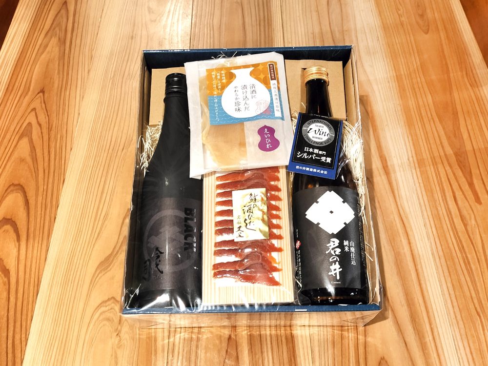 日本酒に合うおつまみが入った飲み比べセット。
