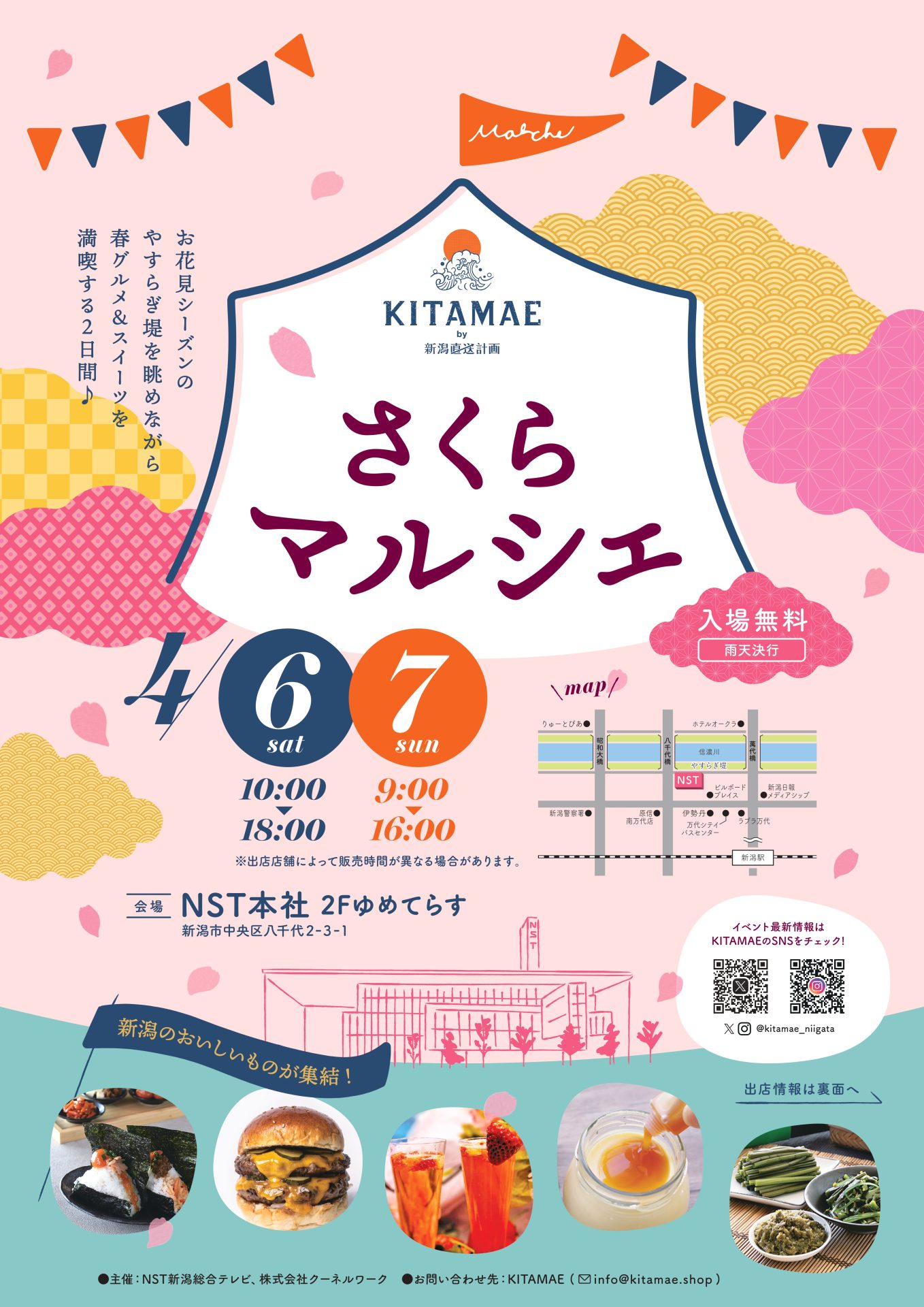 4月6日-7日の土日2日間、NST本社2F「ゆめてらす」にて、NST新潟総合テレビ様との共催イベント『KITAMAEさくらマルシェ』を開催いたします!
