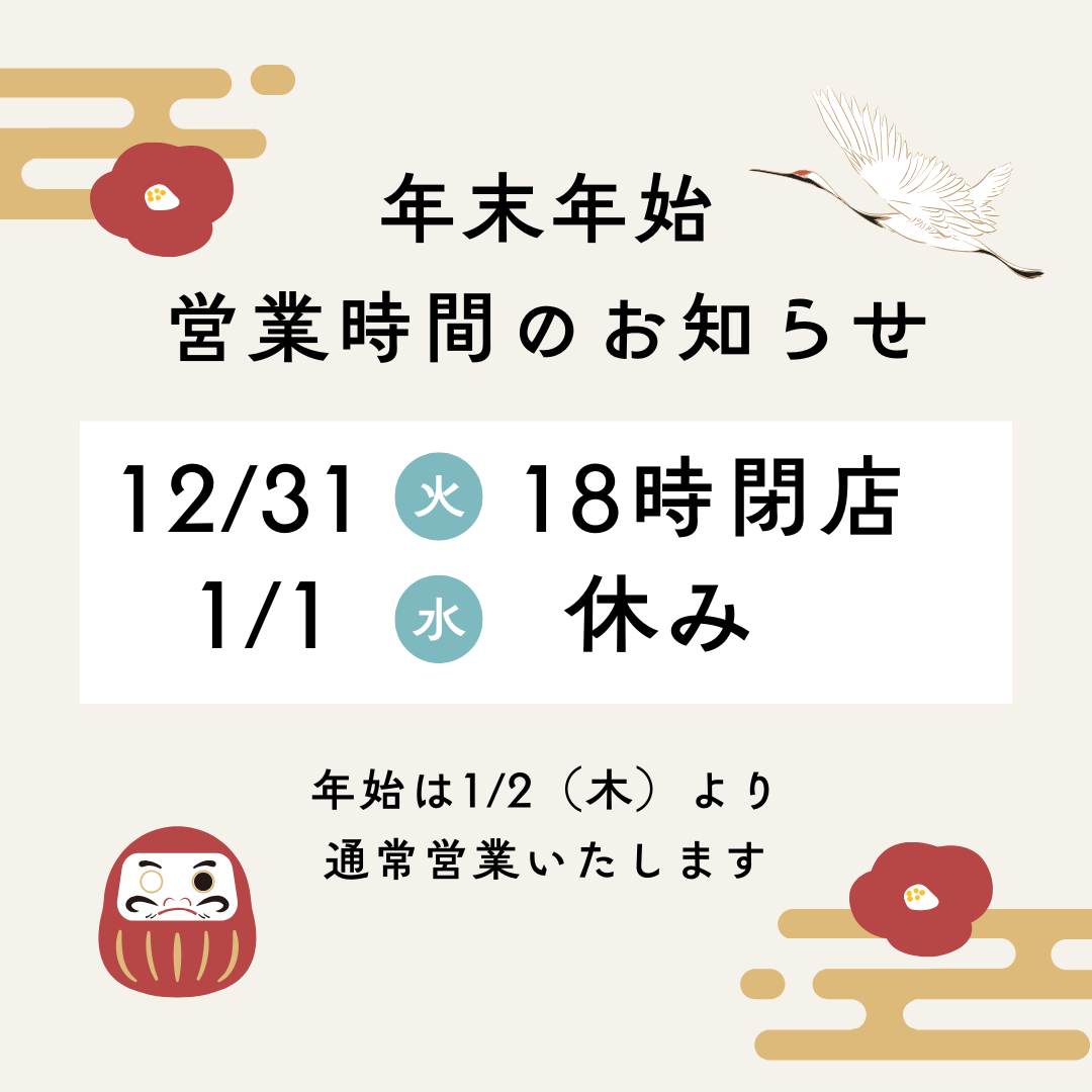 誠に勝手ながら、年末年始の営業時間を以下の通り変更させていただきます。